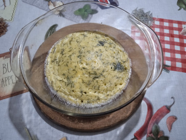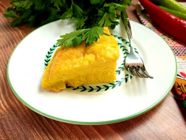 Приготовила омлет с сыром в духовке на завтрак по этому рецепту. Взбила яйца с солью венчиком. Добавила молоко, муку и соду и хорошо размешала. В конце натерла твердый сыр. От себя ещё добавила измельчённый укроп. Форму смазала маслом и перелила яичную массу с сыром. Запекала в духовке 20 минут. Восхитительный вышел омлет. Сначала он был воздушный, но потом опал. Омлет с сыром нам понравился. Он сытный и очень аппетитный. Кстати, удобно готовить в духовке. Поставил и занимаешься своими делами. Хороший рецепт! Благодарю автора)