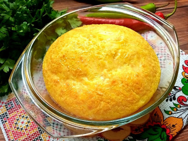 Омлет хорошо поднялся, стал пышным, пористым с румяной корочкой! Мне кажется, омлет больше похож на сырный пирог). Очень вкусный и сытный, приятно пахнет сыром!