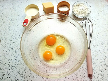 Сегодня на завтрак приготовила омлет с сыром в духовке. Рецепт простой и понятный, выпечка занимает совсем не много времени.