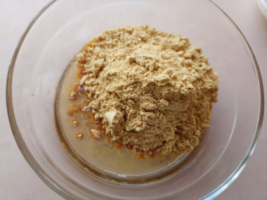 На донышко прозрачного стакана или баночки налейте растительное масло. Оно не позволит прилипнуть горчичному порошку ко дну при перемешивании. Прозрачные стенки емкости, в которой будет готовиться горчица, также способствуют более тщательному перемешиванию, т.к. сразу видно где еще остался сухой порошок.