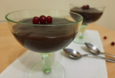 Уже делала пудинг по другому рецепту, но со вкусом ванили и с использованием куриного яйца. Сегодня решила использовать данный рецепт шоколадного пудинга. Получилось очень вкусно, спасибо автору за четкую инструкцию :). Специальных форм не было, использовала две кружки. Из-за того, что кружка очень большая, кажется, что пудинга мало, но на самом деле у меня вышло две порции примерно по 240 грамм. Крахмала я использовала меньше, около 19 грамм, по одной простой причине: он неожиданно закончился. Решила добавить чайную ложку муки, примерно три грамма. Думала, выйдет жидковато, но нет, довольно густой, а после охлаждения в холодильнике ещё гуще. Как раз такую консистенция я и люблю. В меру сладкий, нежный, симпатичный глянцевый вид, приготовление не составило трудностей. Надеюсь, когда-нибудь смогу порадовать себя и маму, для которой я готовлю в том числе, и купить красивые формочки! Ведь несмотря на вкус блюда, гораздо приятнее его есть, когда оно красиво оформлено, все-таки)