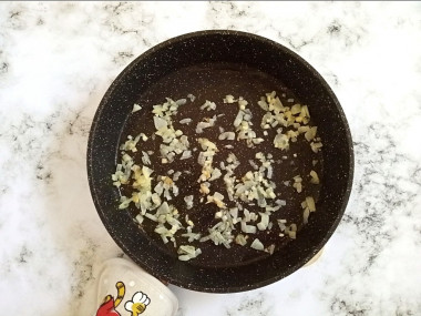 Тем временем в сковороде растопите сливочное масло и обжарьте на нем лук и чеснок примерно 2 минуты до появления яркого аромата.