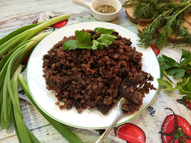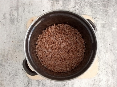 К этому времени гречневая крупа будет уже готова. При правильных пропорциях она получается рассыпчатая, но не разваренная.