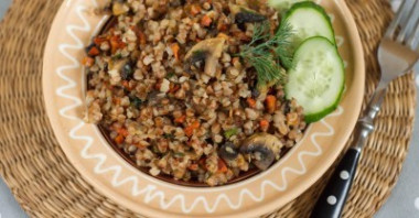 Гречка с шампиньонами, луком и морковью привлекла тем, что ее можно очень быстро и просто готовить. Буквально за полчаса, приложив небольшое количество усилий я сделала полноценное второе блюдо или хороший гарнир. Как вариант, можно дополнить, допустим, вчерашнюю или утреннюю гречневую кашу грибной зажаркой и будет готово совершенно новое интересное блюдо. Гречка понравилась всей семье, большое спасибо за отличный рецепт!