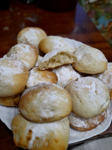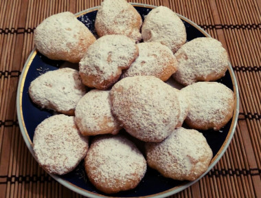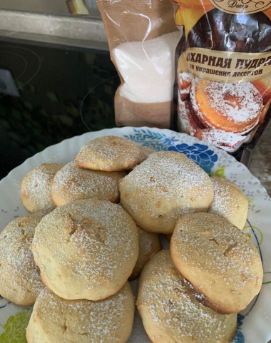 Готовое печенье имеет золотистый цвет. Снимите его с противня и выложите остывать на тарелку, а после присыпьте сахарной пудрой. Подавайте такое печенье с чаем или молоком. Приятного аппетита!