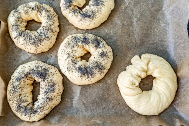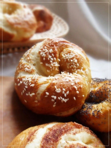 Булочки из вареного дрожжевого теста оказались настоящим открытием для меня. Получились они такими красивыми и румяными, что просто поразительно! А вкусные какие – словами не передать. Сформировала булочки в виде бубликов. Присыпала булочки кунжутом и маком. Просто супер! Спасибо автору за рецепт!