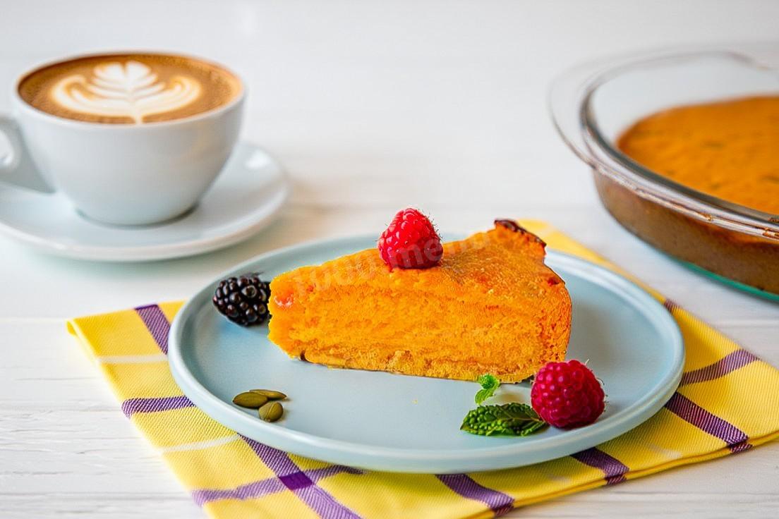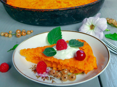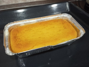 Вылейте тесто в форму и поставьте в духовой шкаф, нагретый до 180 градусов. Минут через 15 температуру снизьте до 160 градусов и готовьте запеканку еще около получаса. Время и температура указаны приблизительно, ориентируйтесь на свою духовку и готовность запеканки. Когда она зарумянится и не будет прилипать к деревянной шпажке при протыкании —запеканка из тыквы с манкой готова.
