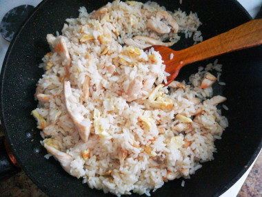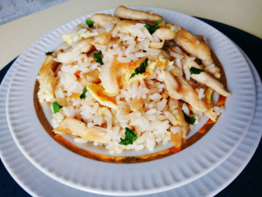 Рис получился вкусным, слегка подсушенным, рисинка к рисинке. Сочетание куриного мяса, яйца, риса очень гармонично.