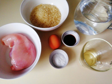 Большую часть времени занимает варка риса. А всё остальное делается молниеносно. На стадии закипания крупы у меня уже было готово обжаренное мясо. Это заняло три минуты. Еще полминуты ушло на жарку взбитого яйца, которое из тоненького блинчика превратилось в яичные хлопья путем быстрого помешивания лопаточкой. Следующая минута ушла на обжаривание хлопьев и мяса. И, наконец, шесть минут на совместную жарку с рисом с добавлением соли и соевого соуса.