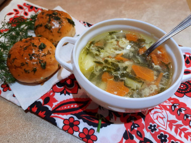 Приготовила щи со шпинатом по этому рецепту. У меня было много шпината, думала, что бы такого приготовить, и на нашем сайте как раз вовремя попался этот рецептик. Рецепт простой, щи готовятся быстро. Получается отличное витаминное первое блюдо. Щи сделала немного гуще, чем у автора. Яйца добавляла в кастрюлю, хорошо помешивая. Подавала щи с украинскими пампушками с чесночком. Отличный получился ужин, вкусный и полезный! Автору большое спасибо за этот простой и очень витаминный рецептик. Вот мои щи)))