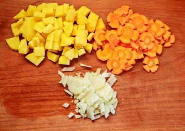 Почистить и нарезать морковь, цветочками, суп будет выглядеть намного привлекательнее и эстетичнее, особенно, если будете угощать друзей.