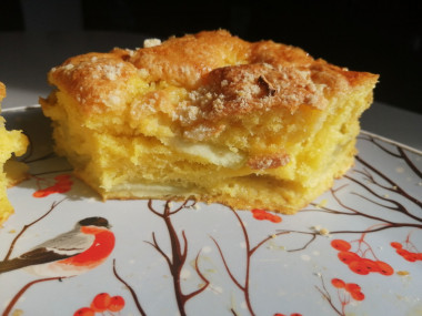 Аромат цитрусов, золотистый цвет, нежный, тающий бисквит, кисленькие яблочки сразили всех домашних...
