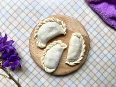 Залепите края каждого вареника. Я для красоты и прочности использую способ лепки косичкой.