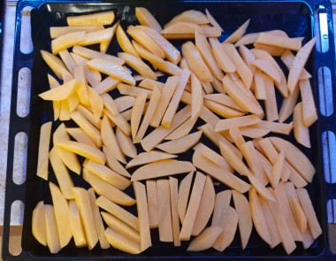 Шаг 3. Сколько готовить картошку фри без масла в духовке?