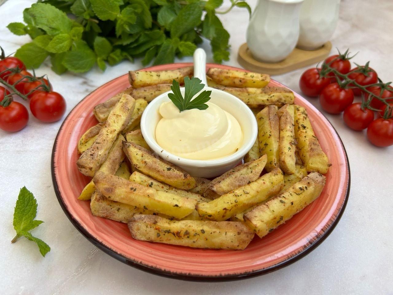 Употребляйте блюдо сразу. При хранении запеченный картофель фри теряет хруст и становится мягким. Если остатки есть, разогревайте их в разогретой духовке или сухой сковороде для частичного возвращения текстуры.