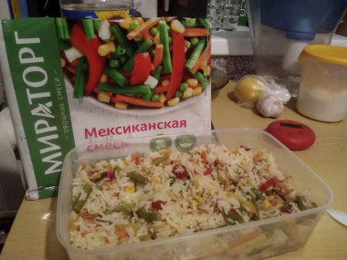 Когда-то давно моя мама часто готовила такое второе, только вместе с овощами был еще и замороженный рис. А потом мексиканская смесь пропала из магазинов и я про нее не вспоминала. И вот увидела рецепт Рис с мексиканской смесью, приятные воспоминания всплыли)
