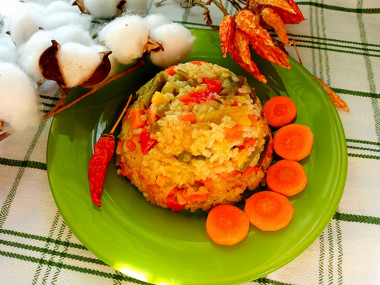 Люблю овощные и простые блюда. Если нет мексиканской смеси попробуйте вот такой вариант - плов с болгарским перцем и помидорами.