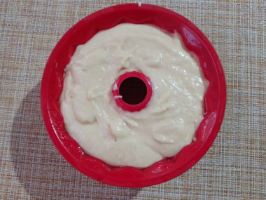 Захотелось испечь детям кекс. И как раз увидела в ленте рецепт кекса на кислом молоке. Так как кислого молока у меня не оказалось, заменила его кефиром. Замесила тесто по рецепту. Разрыхлитель не добавляла, решила, что гашёной соды хватит. Выложила тесто в форму и поставила выпекаться.