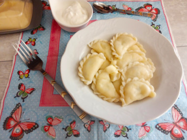 Подавайте вареники со сливочным маслом или со сметаной. Приятного аппетита!