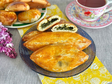 Подавайте сладкие пирожки со щавелем из дрожжевого теста к столу с чаем или молоком. Приятного аппетита!
