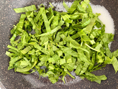 У щавеля оборвите стебли, листья нарежьте соломкой.