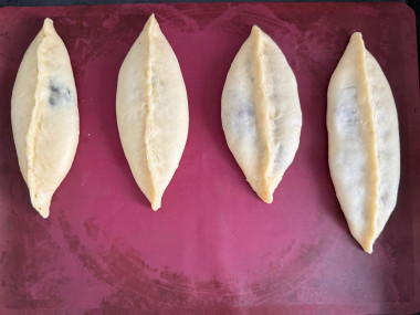 После чего смажьте пирожки разболтанным с молоком яичным желтком.