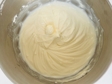 Перемешайте до однородности. Если используете миксер - взбивайте на низкой скорости. Так как если перевзбить сыр то от него может отделиться молочная сыворотка и продукты будут испорчены.