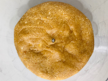 В основу ушло 5 гр цедры, так как лимон маленький. Основа не собиралась в комок, поэтому добавила столовую ложку молока по совету автора.