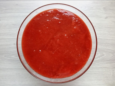 По этому рецепту фрукты изначально не надо чистить от косточек. Чистую алычу я довела до кипения и немного уварила. Затем эту массу протерла через сито. Процесс трудоемкий, но результат того стоит. В итоге у меня получилось густое однородное пюре.