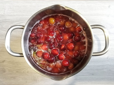 2. Перекладываем подготовленные ягоды в кастрюлю, наливаем немного воды, отправляем на огонь. Варим на среднем огне в течение 5-10 минут с момента закипания. Время варки напрямую зависит от плотности ягод, чем мягче будет алыча, тем меньше времени понадобится. Еще нужно следить, чтобы все ягоды проварились равномерно. Поэтому не отходя от плиты перемешиваем алычу, чтобы погрузить в воду те ягоды, которые всплыли.