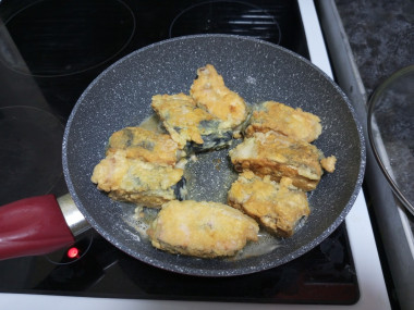 В сковороде с толстым дном и желательно с антипригарным покрытием разогрейте растительное масло. Выложите запанированные кусочки горбуши. Обжаривайте сначала с одной стороны до золотистого цвета около 5-7 минут.