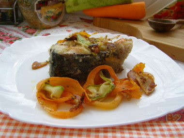 Рыба получилась настолько сочной, что мне даже не понадобился соус. Муж добавил себе горчицу (это она разложена на рыбе на фото).