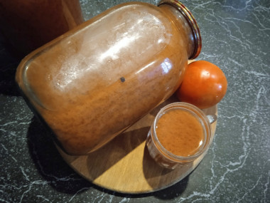 Сделала томатный сок через соковыжималку на зиму по этому рецепту. Мне понравилось, что заготовка идёт без уксуса. Помидоры использовала домашние, крупные, красные, черный принц и жёлтые. Пропустила через мясорубку и варила в чугунке по описанию в рецепте. Спасибо автору за совет, когда сок начинает закипать, он действительно ползёт вверх. Это очень важно и нужно учитывать размер посуды для варки. Когда исчезла пенка, что заняло минут 15, положила соль и сахар. От себя добавила перец горошком, лаврушку и гвоздичку, так делала моя бабушка. Томатный сок получился очень и очень вкусный, насыщенный, ароматный, хорошей консистенции. Закрыла на зиму 2 банки томатного сока и на попить оставила. Мы очень любим томатный сок) Такой сок и пить приятно, и также можно использовать для приготовления вторых блюд, в подливу, например. Я с томатным соком готовлю голубцы и булгур тушу в томатном соке, это очень вкусно. Домашний сок не только вкуснее магазинного получился, но ещё и полезный. Всем рекомендую заготовить!