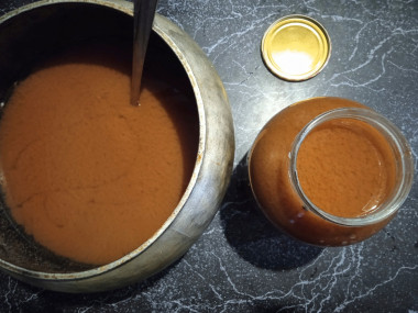 Вчера готовила по этому рецепту. На 10л. сока- 13кг.помидор. Перебила в соковыжималке. Варила как указано в рецепте, но 5л. томата добавила 1ст.л сахара, и 1,5ст.л.соли. По вкусу все супер.
