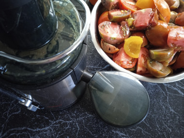 • Чтобы томатный сок получился идеально гладким, после соковыжималки его можно дополнительно процедить через мелкое сито.