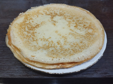 Как только это произойдет, блин переверните и допеките, затем снимите его на блюдо. Испеките таким образом и остальные блины из оставшегося теста.