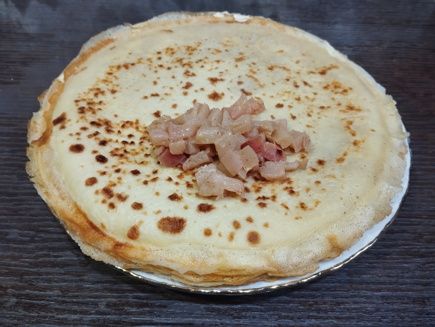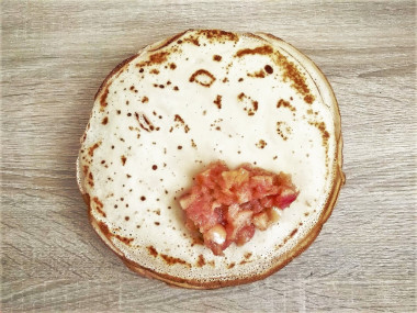 Выложите 1 ст.л. яблочной начинки на середину или край блина.
