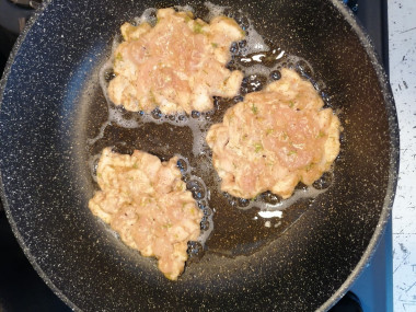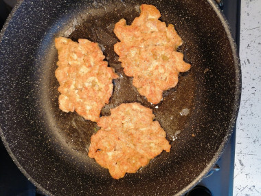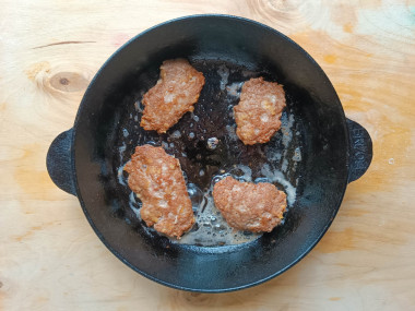 На сковороде с разогретым маслом обжаривайте котлетки с двух сторон, выкладывая их ложкой.