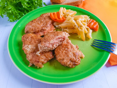 Котлеты получились сочные, вкусные, нежные. Сыр особо не чувствуется, но всё равно какой-то интересный вкусовой оттенок придает.