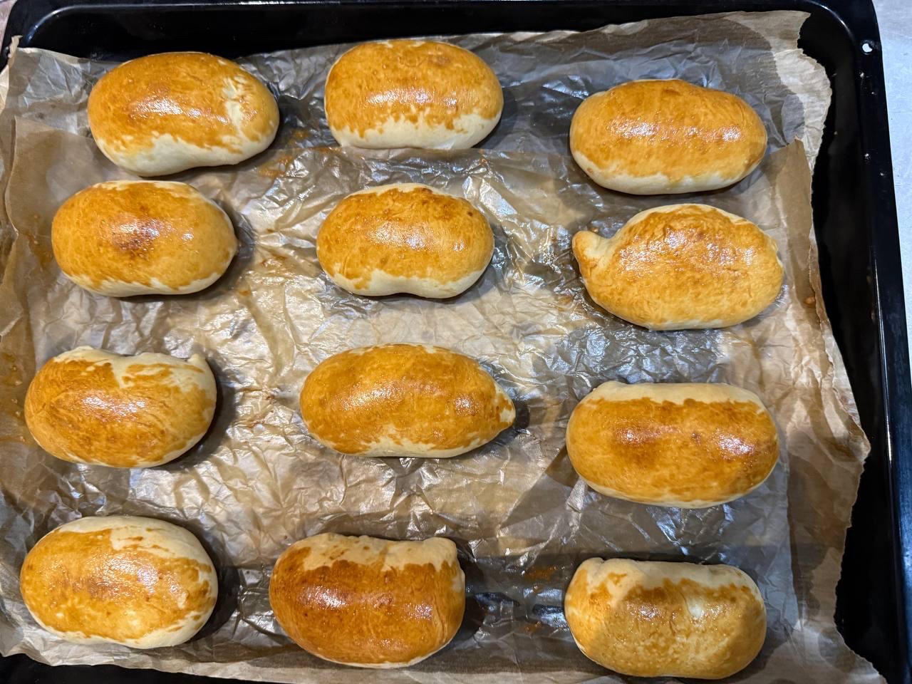 Очень понравились дрожжевые пирожки с картошкой в духовке! Готовила строго по рецепту, тесто поднялось, все получилось! Румяные такие, вкусные.. Только я их швом наверх оставила, устала всё-таки, забыла, но от этого они не стали менее вкусными, но в следующий раз обязательно переверну, чтобы были больше похожи на те самые пирожки из булочных