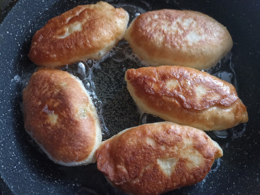 Как только снизу пирожок поджарился, перевернуть его и обжарить со второй стороны.