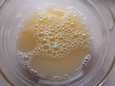 Яйца взбить с сахаром и солью, влить теплой воды, перемешать все.