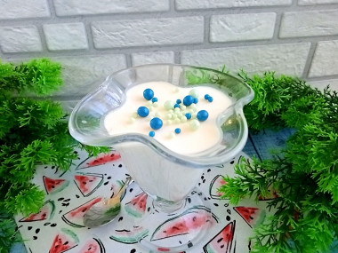 Украсьте лакомство по своему вкусу: ягодами, фруктами, листочками свежей мяты, красочной присыпкой, натертым шоколадом и т.д. Подавать его лучше всего днем, а не на ночь. Сметанный десерт идеально освежает в летний зной, поэтому такая молочная сладость чаще всего готовится именно в летнее время.