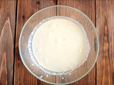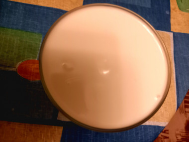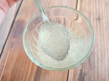 Сметана у меня 20%. Количество сахара для нас слишком большое. Поэтому добавила три столовые ложки, растворила в сметане и попробовала. На мой вкус самое то). Но вкусы у всех отличаются, поэтому пробуйте. Желатин у меня обычный, который нужно замачивать. Залила его кипяченой водой, дождалась, когда набухнет и разогрела в микроволновке.