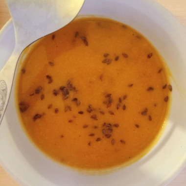 Аромат - восторг! Из специй дополнительно добавила чуточку имбиря (тут важно не пререборщить, чтобы не перебить вкус помидоров) и куркуму. Посыпала семенами льна. Получилось очень питательно, полезно и вкусно! А ещё немного пересолила, но сметана всё исправила и добавила сливочного вкуса