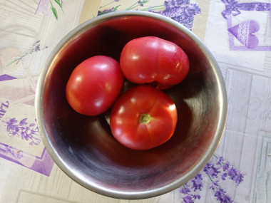 Помидоры промойте в воде, выложите в глубокую миску или пиалу, залейте кипятком и оставьте на 3-5 минут в зависимости от величины плодов. После этого резко переместите помидоры в ледяную воду. Благодаря разнице температур кожура с томатов легко счистится.