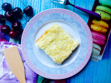 Получилась запеканка очень вкусная и несильно сладкая, что мне очень понравилось. По консистенции она плотная, при нарезке не крошится.