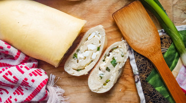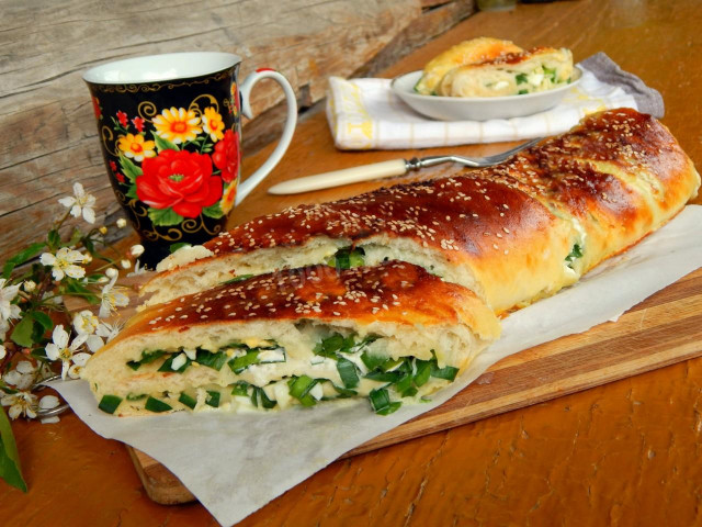 Подавайте рулет с зеленым луком и яйцом горячим к чаю или кофе. Эта выпечка очень сытная, поэтому ей можно заменить обед или ужин. Приятного аппетита!