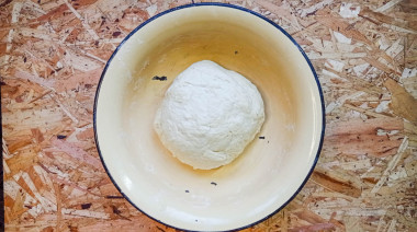 Частями всыпьте просеянную муку, перемешивая массу ложкой, чтобы тесто хорошо промешалось. В зависимости от качества муки её может понадобиться чуть больше или чуть меньше. О муке и её свойствах подробнее можно прочитать в отдельной статье, ссылка в конце рецепта. Тесто должно получиться эластичное, не очень тугое, но оно должно перестать липнуть к стенкам миски. Миску с тестом накройте полотенцем и поставьте в теплое место на полчаса.
