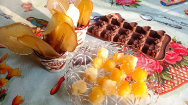 Через пятнадцать минут леденцы затвердели, но не до конца, поскольку у нас сейчас стоит очень жаркая погода. Леденцы пришлось убрать в холодильник.